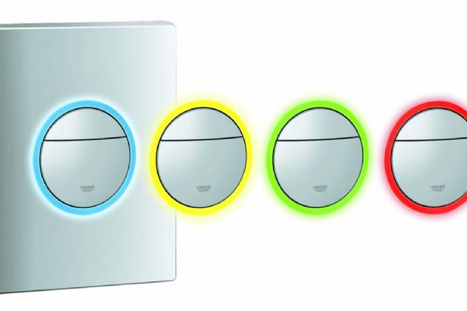 In de badkamer wordt steeds meer elektronica geïntegreerd, bijvoorbeeld in digitale kranen en scheerspiegels met ingebouwde tv-schermen. Deze trend uit zich echter ook op een ander niveau. De led-verlichte gekleurde rand van Grohe Nova Light geeft een innoverende toets aan een product – de spoelknop van het toilet - dat doorgaans onopvallend is.