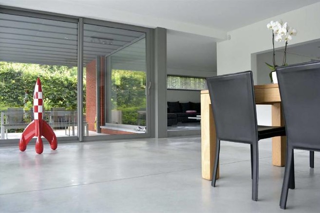 De heer Roseau kreeg prima advies van een gespecialiseerd aannemer en is heel tevreden met zijn keuze. Ondertussen is er twee jaar verstreken sinds de vloer geplaatst werd en alles ziet er perfect uit. “Ik weet dat sommige klanten klagen over scheuren die eventueel kunnen ontstaan in betonnen vloeren maar wij hebben geen enkele onaangename verrassing gehad … Ik heb wel ingestemd met de plaatsing van voegen waar de aannemer dit aangeraden heeft. Deze voegen storen mij helemaal niet, ze dragen bij tot de kwaliteit van de vloer en op esthetisch vlak geven ze een bepaald ritme aan de woning. En omdat een gewaarschuwd man er twee waard is: vraag altijd referenties aan uw toekomstige aannemer. Vraag hoeveel betonnen vloeren hij al geplaatst heeft bij particulieren en vraag enkele adressen zodat u ter plaatse het resultaat kunt bekijken.”