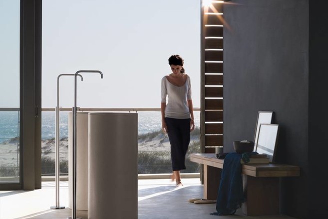 Het ligbad komt dan op een uitgekiende plek te staan, niet zelden met uitzicht naar buiten. De FS Familie van Vola is precies voor deze omgeving ontworpen.