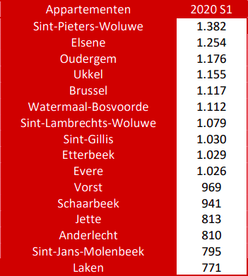 Tijdelijke correctie in Brussel In Brussel sloot de evolutie van de huurprijzen in het voorjaar van 2020 opnieuw aan bij de trends die we tot half 2019 zagen. Het najaar van 2019 blijkt daardoor een uitschieter te zijn geweest. Ten opzichte van het vorig semester daalden de gemiddelde huurprijzen in Brussel. Dat is dat naar alle waarschijnlijkheid eerder een tijdelijke correctie. Dee coronacrisis is er uiteraard ook niet vreemd aan.