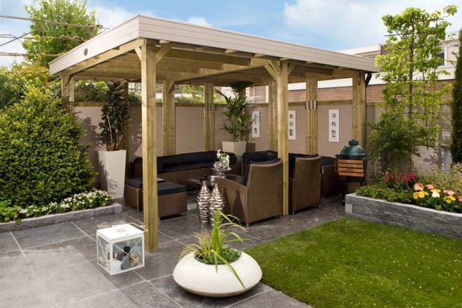Van intieme loungeruimte, beschut terras of handige buitenkeuken tot extra bergruimte of luxe carport. Het is allemaal mogelijk met de Excellent-overkappingen en -wandelementen van Hillhout.