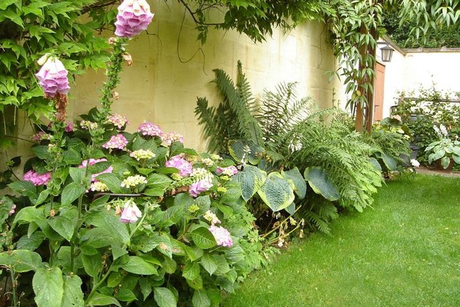 Bij de aankleding van een kleine tuin plaats je donkere kleuren en donkere planten ook tegen de uiteinden van de tuin. Lichtere materialen, kleuren en planten mogen meer naar het midden komen.