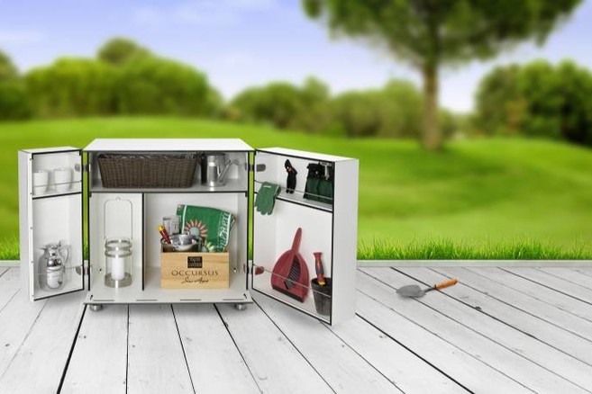 Wanneer je kussens of hoezen van je tuinmeubilair bij een plotse regenbui wilt opbergen, is een opbergkoffer een handig instrument. Niet tegenstaande dat de kussens van vandaag er niet tegen kunnen, met een opbergkoffer kun je ze van een lange droogtijd besparen. Als je materiaal als bloempotten of andere kleinigheden op het terras kwijt wil, dan kan dat in een tuinkast. Maak wel de bedenking dat die hoe dan ook ruimte inneemt. En hoe meer bergruimte, hoe meer ‘rommel’ je verzamelt.