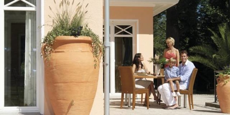 Maar je hebt niet altijd de mogelijkheid om zo groot te gaan. Het kan ook klein. Denk maar aan de quasi oneindige keuze die er is in het gamma van de regentonnen.
