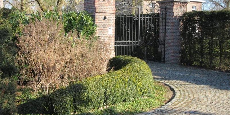 Het uitgangspunt was de tuin in zijn totaal te bekijken. Maar de grootste verwachting hadden de opdrachtgevers bij de oprit. “Die moest een dreefgevoel oproepen, deels onttrokken worden aan het zicht en leiden naar de voordeur, naar een grote nieuwe parking en naar de garages achteraan in de tuin. De oude inkom mocht herwerkt tot een voetgangerspad. En achter in de tuin was ook een aparte doorgang vanaf de straat naar de garages gewenst. Deze ingang zou ook dienen voor werkverkeer en moest voldoende stevig uitgevoerd zodat er ook vrachtwagens op konden rijden. Een andere wens lag Paula na aan het hart. Ze had nog een oud ijzeren hek dat vroeger de eigendom van haar grootouders afbakende. Dat had ze heel graag in de nieuwe tuin geïntegreerd gezien.”