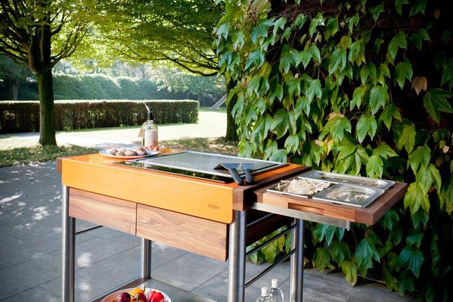 Indu+ ziet 2012 alvast door een kleurrijke bril. Zo brengen ze hun kooktrolley ‘ServeBoy’ nu naast wit ook uit in sfeervol oranje en appelgroen. Het hoogwaardige composiet wordt gecombineerd met massief notelaarhout, wat de trolley een warme uitstraling geeft. Volledig nieuw is de teppanyaki kookplaat op inductie met vier kookzones. Deze kunt u apart bedienen, maar kunt u ook twee-aan-twee verbinden, zodat u twee kookvelden creëert.