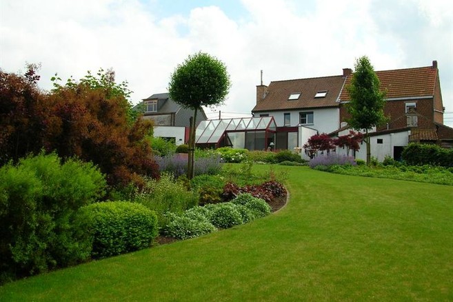 De stijl van de tuin moest vooral een mooie overgang maken met het landschap en goed aansluiten met de woning. Opvallend is dat je een heel mooi panoramisch zicht hebt vanuit de woning die je direct uitnodigt om de tuin in te trekken. Belangrijk in een tuin is dat je verschillende hoekjes krijgt die je moet ontdekken door in de tuin te wandelen. Van op een zitbank kunnen de bewoners van de tuin zelf genieten.Tot rust komen